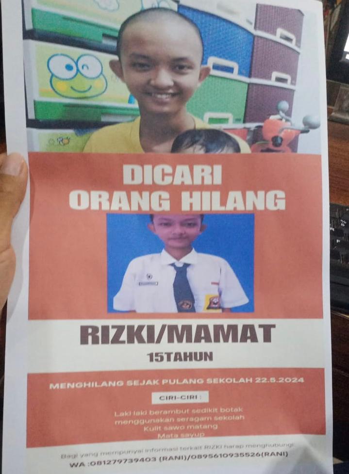 KATANDA.ID, Palembang – Muhamad Rizki, seorang pria berusia 15 tahun asal Palembang. Dilaporkan menghilang sejak Rabu (22/5/2024) pagi hingga Jum’at (24/5/2024).