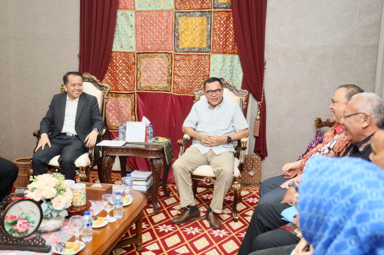 KATANDA ID, Palembang – Penjabat (Pj) Gubernur Sumatera Selatan (Sumsel) Agus Fatoni menerima audiensi dari Dekan Fakultas Ilmu Sosial dan Ilmu Politik (FISIP) Universitas Sriwijaya (Unsri) Prof Alfitri bersama jajaran. Kegiatan ini dilaksanakan di Griya Agung, Palembang, Sumatera Selatan, Senin (27/5/2024).