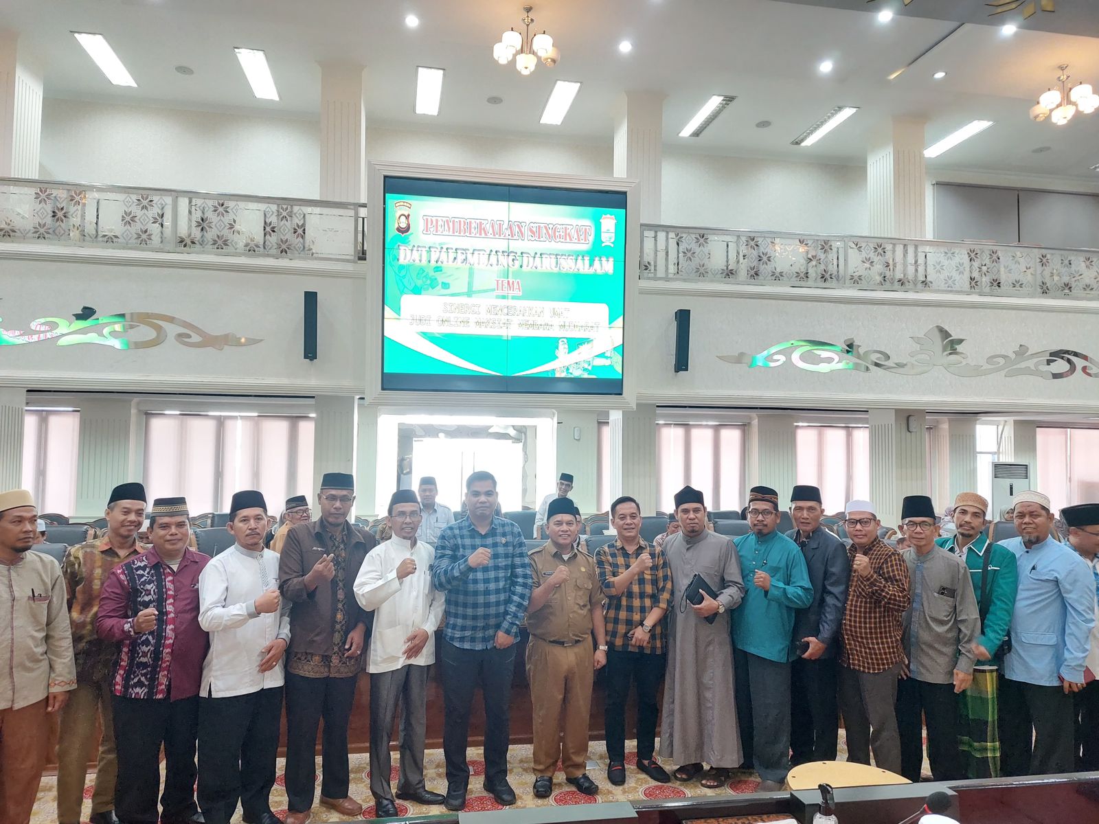Turut hadir, Direktur Intelkam Polda Sumsel diwakili oleh Kasubdit V melalui Panit Subdit V Kamsus Iptu Baitul Ulum S.E, Kabag Kesejahteraan Rakyat Pemerintah Kota Palembang yang diwakili Katim Bina Mental H. Marwansyah S.Ag M.Pd dan Para Da’i / Assatidz Palembang Darussalam yang berjumlah 50 orang.