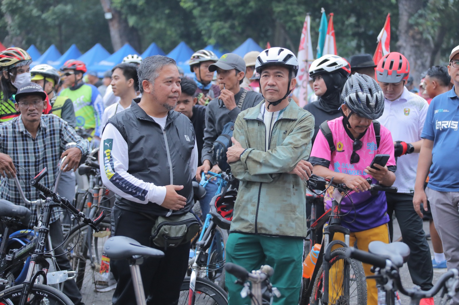 Ucok Abdulrauf Damenta di jalan Tasik Kambang Iwak serta dihadiri juga oleh Sekertaris Daerah (Sekda) Ratu Dewa beserta pejabat dan masyarakat kota Palembang menambah semarak gowes dipagi hari sabtu (22/6).