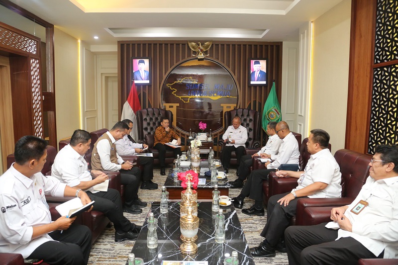 KATANDA.ID, Palembang – Penjabat (Pj) Gubernur Sumatera Selatan (Sumsel) Elen Setiadi S.E. M.S.E menerima Tim On The Spot (OTS) Dewan Ketahanan Nasional (Wantannas) RI dalam rangka Pelaksanaan Kajian Daerah untuk Penguatan Ketahanan Nasional bertempat di Ruang Tamu Kantor Gubernur Sumsel, Rabu (26/6/2024).