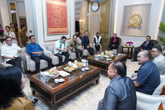 Palembang – Ketua DPRD Provinsi Sumatera Selatan, Ibu Dr. Hj. R.A. Anita Noeringhati, SH.MH bersama Pimpinan Fraksi dan Komisi-komisi DPRD Prov. Sumsel menerima Kunjungan Pj. Gubernur Sumsel. Bapak Elen Setiadi, SH.MSE di Ruang VIP DPRD Provinsi Sumsel. Senin( 1/7/2024).