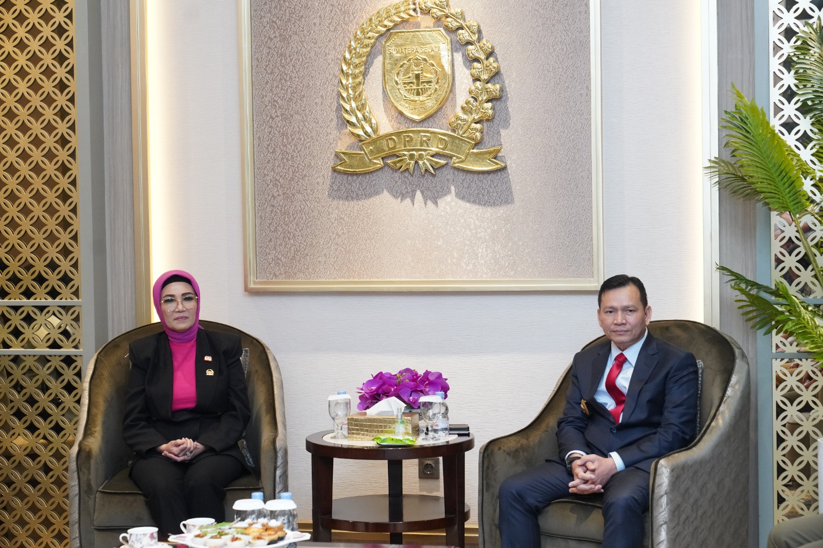 PJ Gubernur Sumatera Selatan,Elen Setiadi silaturahmi bersama ketua DPRD Provinsi Sumsel, Dr..Hj RA.Anita Noeringhati SH MH dalam rangka silaturahmi dan memperkenalkan diri dengan anggota DPRD Provinsi Sumsel.