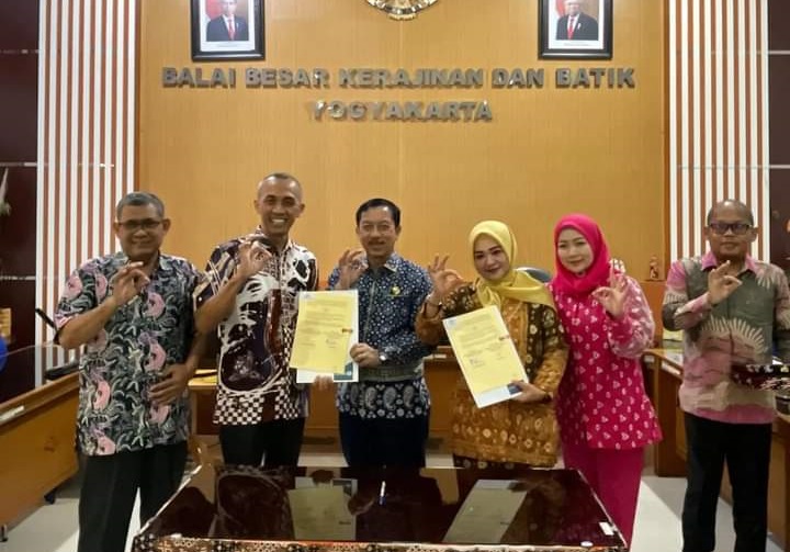 Diterima Aan Eddy Antana, Ketua Tim Pengembangan Jasa Industri Balai Besar Kerajinan Dan Batik, Hj.Merry Hani melakukan penandatanganan Nota Kesepahaman antara Balai Besar Kerajinan dan Batik dengan Dekranasda Kabupaten Banyuasin untuk nantinya menyelenggarakan pelatihan di Kecamatan Air Salek yang direncanakan akan digekar pada 24 Juli mendatang.