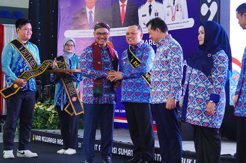 Dalam kesempatan itu Pj Bupati Muba H Sandi Fahlepi bersama istri Hj Triana Minarni Sandi Fahlepi dilantik sebagai Ayah Bunda Genre oleh Kepala BKKBN RI Hasto Wardoyo.