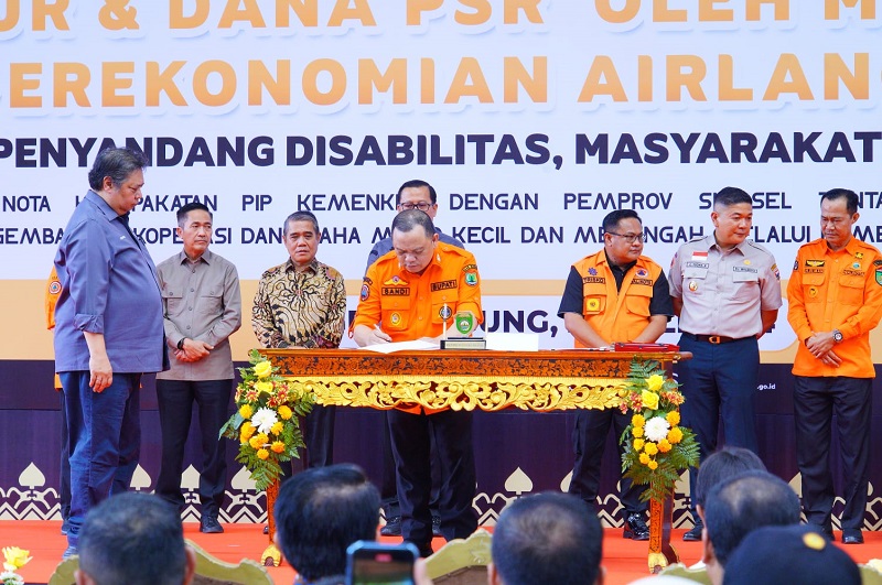 Usai mengikuti Apel dan Simulasi Karhutlah, Pj Bupati Muba langsung mengikuti rangkaian penyerahan kur dan dana PSR oleh Menko Bidang Perekonomian kepada pelaku usaha, wanita, penyandang disabilitas, masyarakat serta perkebunan di Sumatera Selatan. Sekaligus Penandatanganan Nota Kesepakatan Kemenkeu dengan pemprov Sumsel, tentang Sinergi pemberdayaan dan pengembangan koperasi dan usaha mikro kecil menengah melalui pembiayaan mikro. Selanjutnya Pj Bupati Muba H Sandi Fahlepi juga langsung mengikuti rapat, mendengarkan secara langsung pengarahan oleh Menko Perekonomian Republik Indonesia.