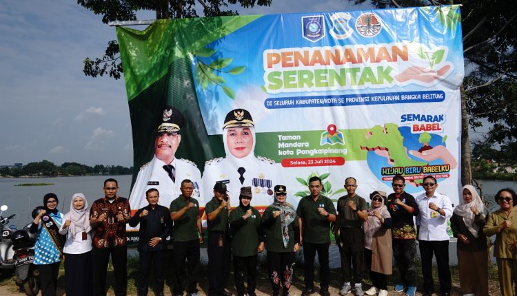 KATANDA.ID, Pangkalpinang – Pemerintah Kota Pangkalpinang mengikuti gerakan menanam pohon serentak Program Semangat Menanam Rakyat Bangka Belitung (Semarak Babel) tahun 2024 dengan menanam 700 bibit pohon di kawasan Taman Mandara dan sepanjang aliran Sungai Rangkui, Selasa (23/7/2024).
