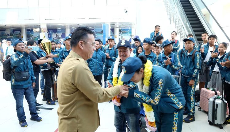 KATANDA.ID, Pangkalpinang – Pulang dengan torehan Juara Umum POPDA XII tingkat Provinsi Kepulauan Bangka Belitung, Sekretaris Daerah Kota Pangkalpinang, Mie Go menyambut kedatangan atlet POPDA Kontingen Kota Pangkalpinang di Bandara Depati Amir, Senin (29/7/2024).