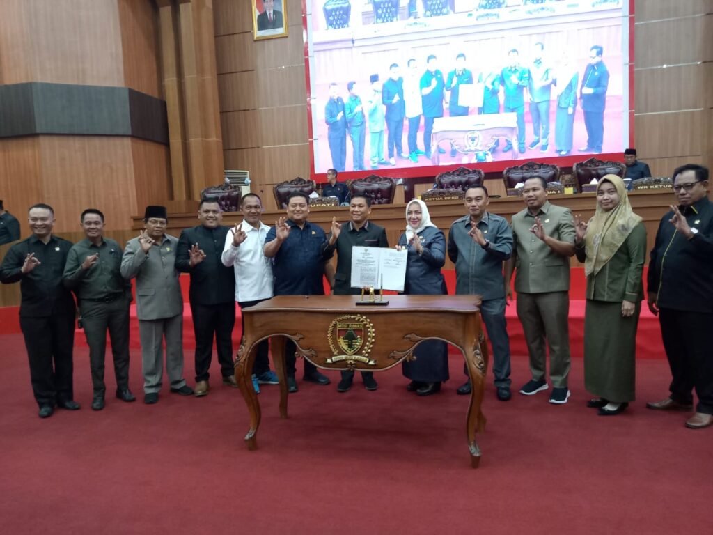 Pengesahan tersebut ditandai dengan penandatangan berita acara pengesahan yang ditanda tangani Bupati Mura, Hj Ratna Machmud dengan Ketua DPRD Mura, Azandri disaksikan ketua-ketua fraksi, ketua-ketua komisi dewan.