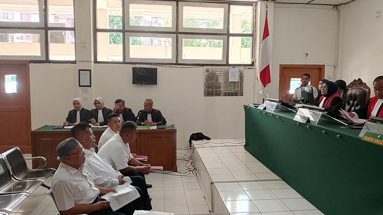 Empat terdakwa yakni, Ahmad Nopan mantan Direktur Utama PT SP2J, Anthony Rais eks Direktur Operasional, Rubinsi Direktur Umum dan Sumirin T Tjinto selaku Direktur Keuangan, jalani sidang dakwaan di PN Tipikor Palembang, Senin (26/8/2024).