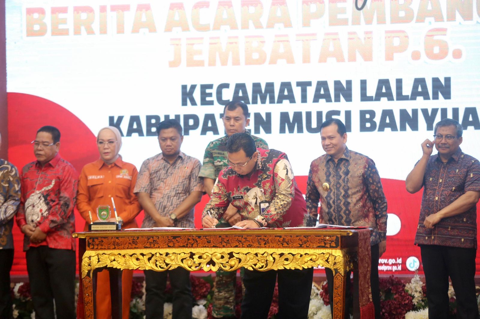 Selain Pj Gubernur sejumlah pihak juga turut membubuhkan tanda tangan pada berita acara kesepakatan bersama Pembangunan Jembatan P6 ini diantaranya perwakilan dari Asosiasi Lalu Lintas di bawah jembatan P.6 yang disaksikan langsung oleh Kepala Kejaksaan Tinggi Sumsel Dr. Yulianto, S.H., M.H., Ketua Komisi IV DPRD Provinsi Sumsel Ir. Hj. Holda., M.Si., Kapolda Provinsi Sumsel yang dalam hal ini diwakili oleh Direskrimsus Kombes Pol Bagus Suropratomo Oktobrianto, S.I.K., Pangdam II Sriwijaya yang dalam hal ini diwakili oleh Kolonel Inf Tamba Tua Panjaitan, Penjabat (Pj) Bupati Muba Sandi Fahlepi, S.P, M.Si, Wakil Ketua DPRD Kabupaten Musi Banyuasin Jon Kenedy, Sekretaris Daerah Kabupaten Muba Drs. Apriyadi Mahmud, M.Si.