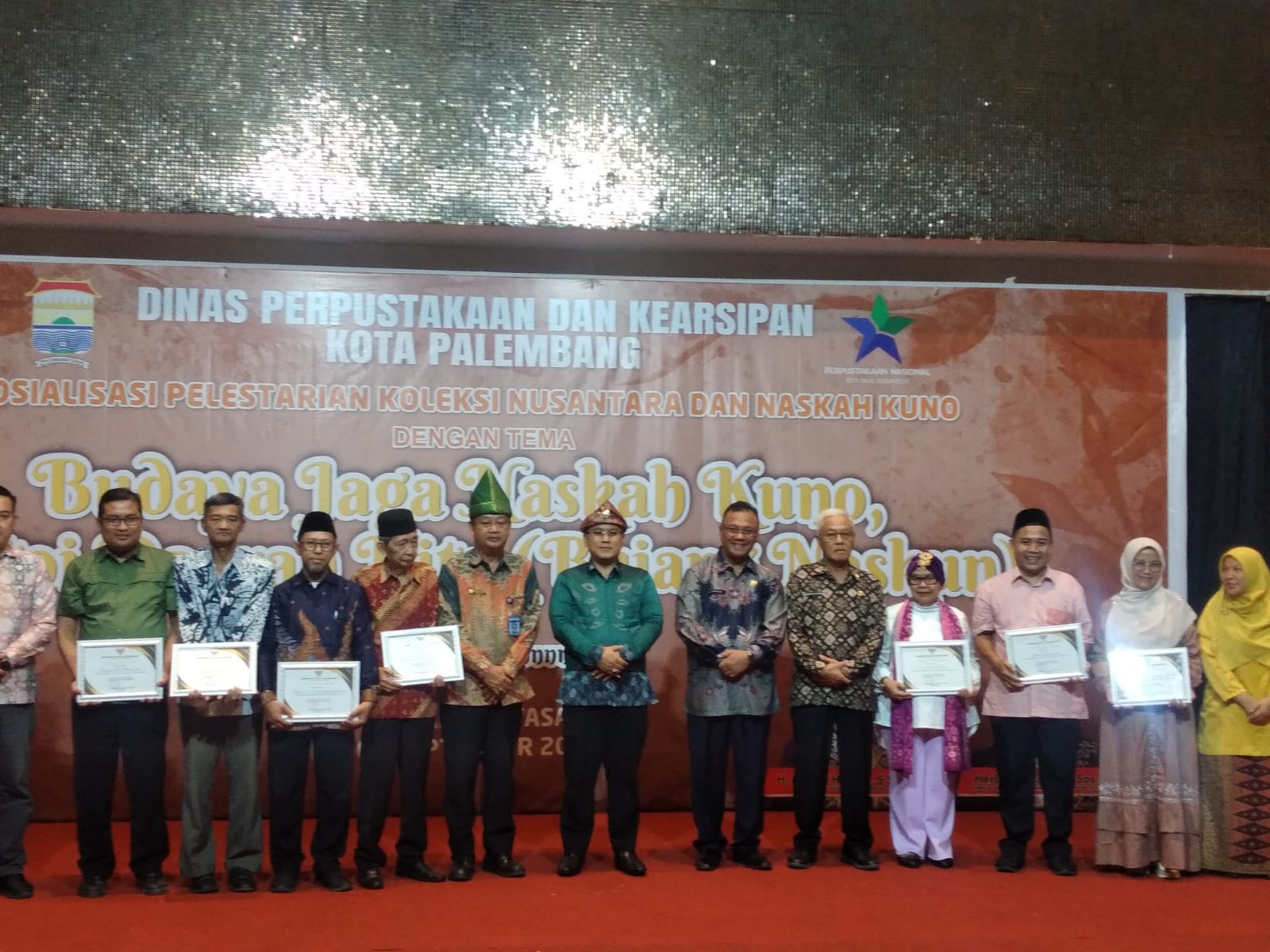 Diakhir acara diberikan 7 piagam penghargaan Bujang Naskun (Budaya Jaga Naskah Kuno, Cintoi Palembang dilanjutkan sosialisasi. (*)