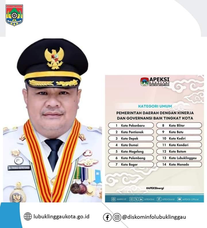 APEKSI memberikan apresiasi khusus dan ucapan selamat kepada 14 kota di Indonesia, termasuk Kota Lubuklinggau yang mendapatkan Anugerah Pandu Negeri 2024 kategori umum, gold dan platinum.