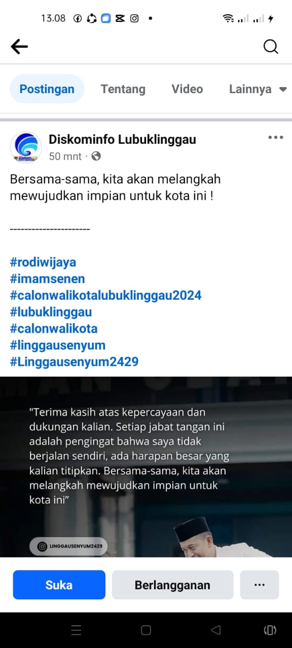 KATANDA.ID, Lubuk Linggau – Media sosial di Kota Lubuk Linggau sempat geger, karena akun milik Dinas Komunikasi dan Informatika (Diskominfo) Lubuk Linggau, diketahui memposting sosialisasi kegiatan bakal calon kepala daerah (Balonkada), Minggu (8/9/2024) siang.