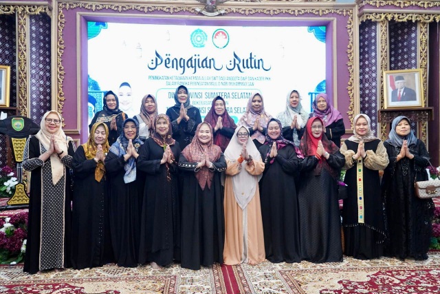KATANDA.ID, Palembang – Penjabat (Pj) Ketua Tim Penggerak (TP) Pemberdayaan Kesejahteraan Keluarga (PKK) Provinsi Sumatera Selatan (Sumsel) Melza Elen Setiadi yang juga selaku Penasehat Dharma Wanita Persatuan (DWP) Sumsel menggelar peringatan Maulid Nabi Muhammad SAW sebagai sarana meningkatkan kecintaan umat terhadap sosok Rasulullah SAW.