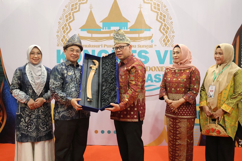 Adapun Wali Kota Banjarmasin Ibnu Sina, menyerahkan senjata khas Banjarmasin, yakni Parang Lais.
