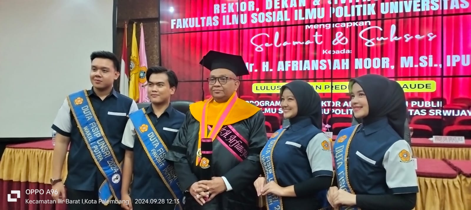 Alfitri mengaku bangga dengan pilihan Wakil Menteri memilih Fisip UNSRI sebagai Program Dokter Administrasi Publik sebagai studi doktornya. Selain UNSRI, dihadiri penguji tamu dari Universitas Brawijaya, juga Busan University Korea Selatan. (Yanti)