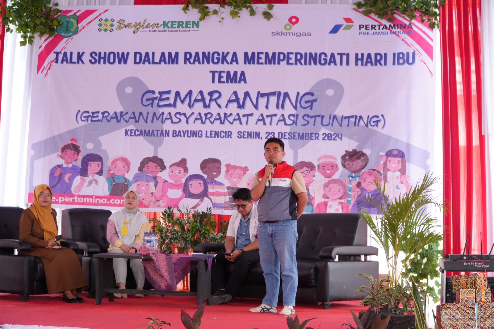KATANDA.ID, Bayung Lencir – PHE Jambi Merang menjadikan Hari Ibu kali ini sebagai momentum untuk membekali para ibu dengan wawasan mengenai stunting. Bekerja sama dengan Pemerintah Kecamatan Bayung Lencir, PHE Jambi Merang menyelenggarakan talkshow bertajuk Gerakan Masyarakat Atasi Stunting (Gemar Anting) di halaman kantor Camat Bayung Lencir, Kabupaten Musi Banyuasin, Senin (23/12).