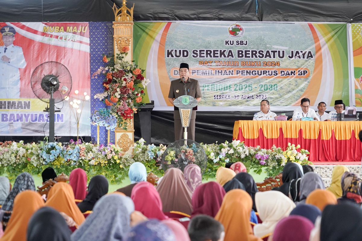 KATANDA.ID, Babat Toman – Bupati Musi Banyuasin (Muba), H. M. Toha, SH didampingi Wakil Bupati Muba Rohman, secara resmi mengukuhkan Pengurus dan Badan Pengawas Koperasi Unit Desa (KUD) Serekah Bersatu Jaya (SBJ) periode 2025–2030 di Gedung Serbaguna Desa Serekah, Kecamatan Babat Toman, Rabu (30/4/2025).