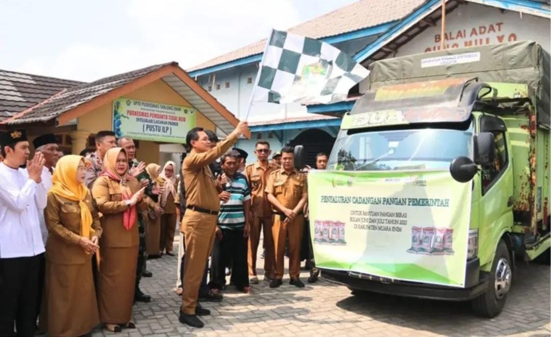 KATANDA.ID, Muara Enim – Bupati Muara Enim H. Edison, S.H., M.Hum. bersama Wakil Bupati Ir. Hj. Sumarni, M.Si., menyalurkan 12 ton beras Cadangan Pangan Pemerintah (CPP) kepada 43.720 keluarga penerima bantuan pangan (PBP) yang tersebar di 256 desa/kelurahan se-Kabupaten Muara Enim.