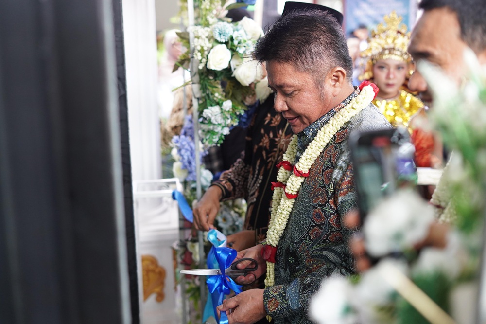 Didampingi Bupati OKI Muchendi Mahzareki, Gubernur Herman Deru menandatangani prasasti peresmian sebagai bentuk penghargaan terhadap kerja sama kolektif warga Desa Kerta Mukti.