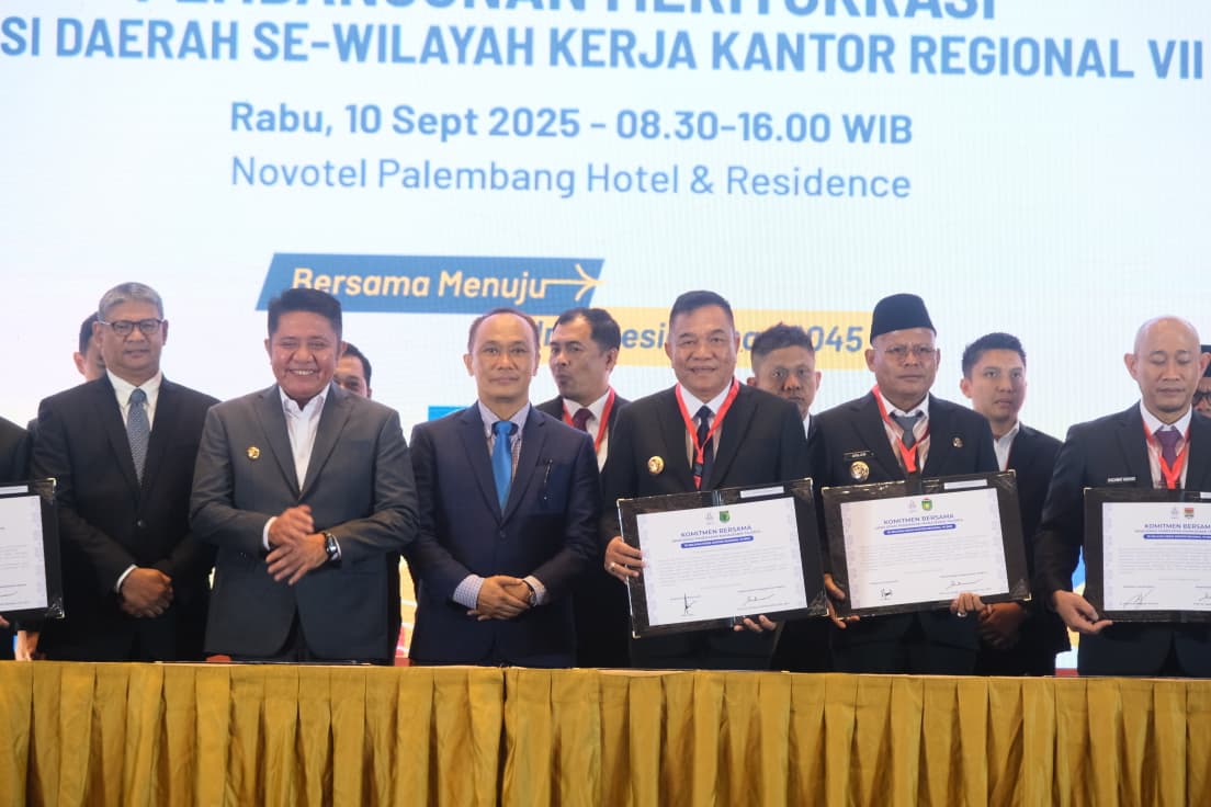 KATANDA.ID, Palembang – Bupati Musi Banyuasin H M Toha Tohet SH hadir secara langsung melakukan Penandatanganan Komitmen Bersama Kepala Daerah Se-Wilayah Kerja Kantor Regional VII BKN Tentang Pembangunan Meritokrasi, Rabu (10/9/2025) bertempat di Grand Ballroom Hotel Novotel Palembang.