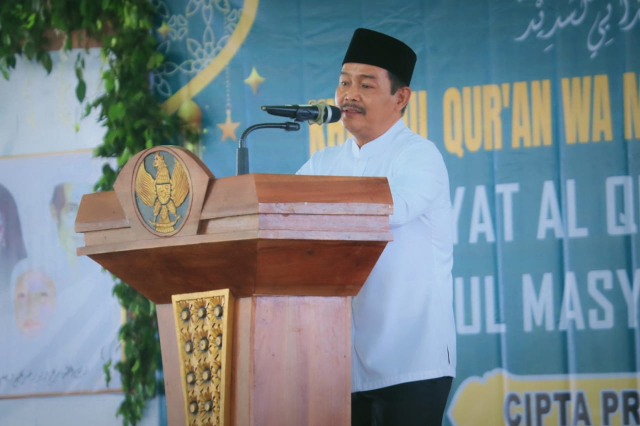 Wabup menyampaikan bahwa kegiatan keagamaan ini memiliki makna mendalam. “Khotmil Qur’an adalah bentuk syukur atas nikmat Al-Qur’an, Maulidurrosul mengingatkan kita untuk terus meneladani akhlak Rasulullah SAW, dan Haul Masyayikh adalah penghormatan kepada para ulama serta pendiri pesantren yang telah berjasa besar,” ujarnya.