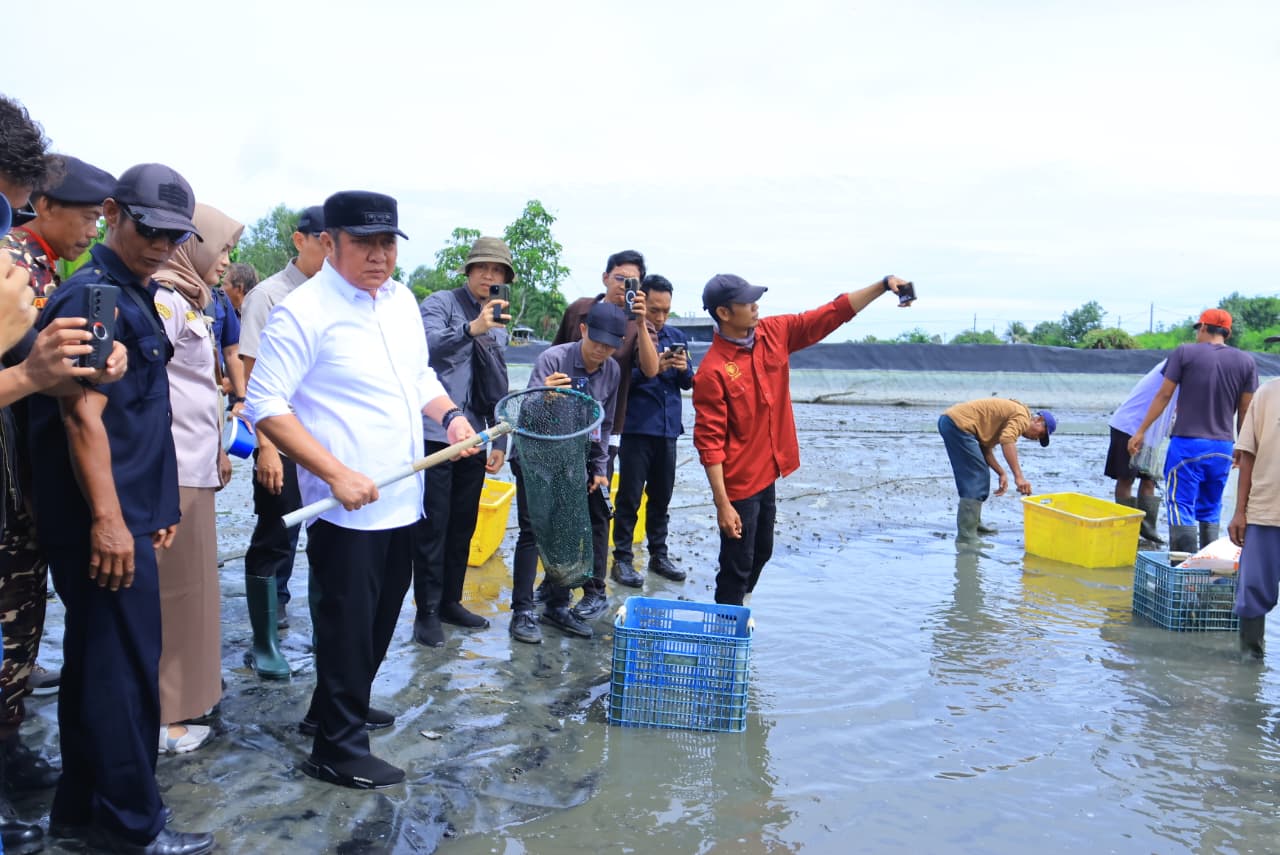 Herman Deru Tinjau Panen Udang di OKI, Serahkan Kincir dan Perkuat Infrastruktur Listrik